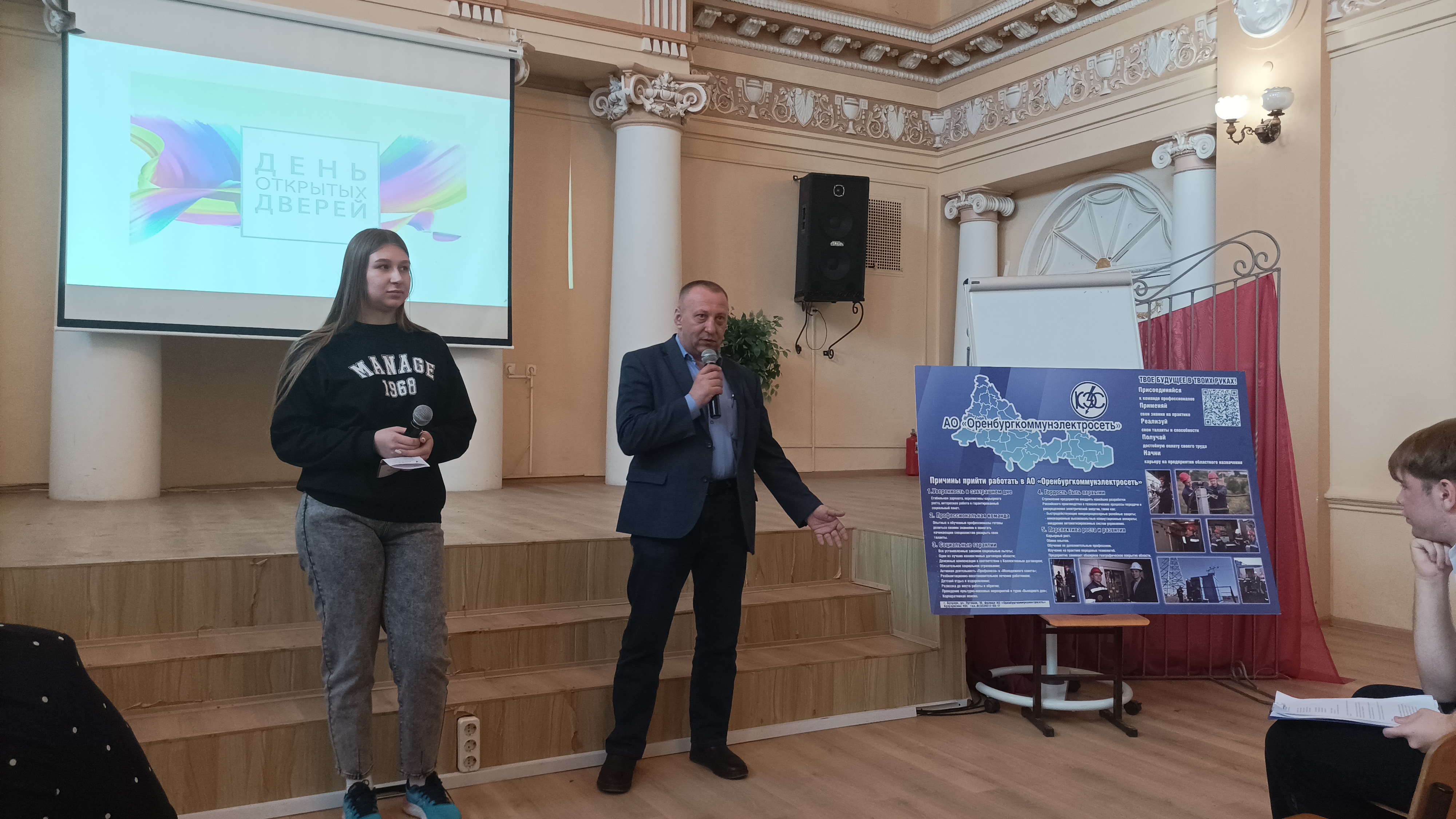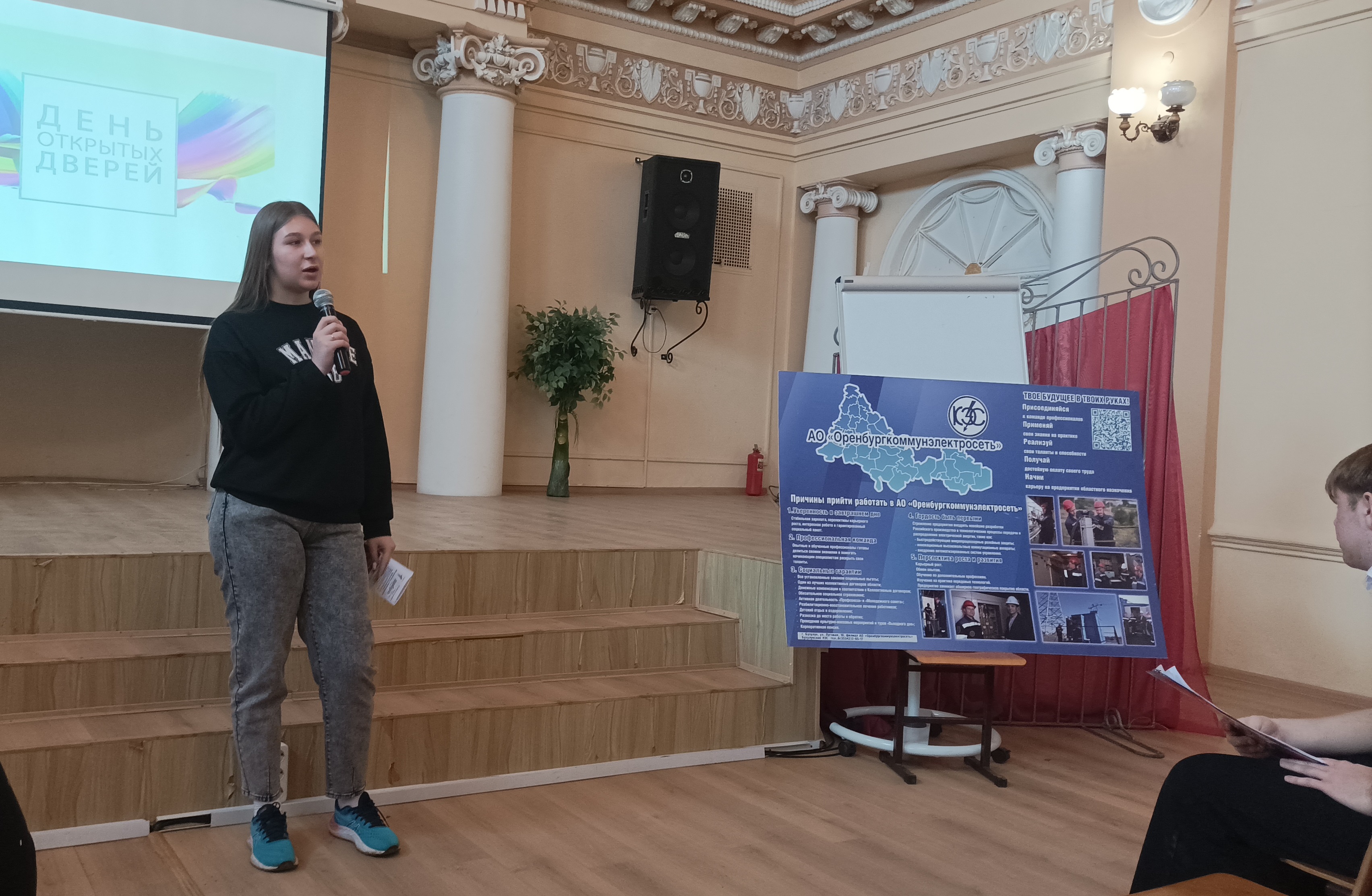 С приветственным словом к студентам, а также будущим абитуриентам колледжа – обратился заместитель главного инженера Андрей Владимирович Потлов, он рассказал о профессии энергетика, востребованности и будущем отрасли в целом. Также отметил высокий уровень подготовки учеников учебного заведения, что устраивает работодателя, поэтому в филиале успешно работают выпускники. Одна из них – Марина Васильева ей легко удаётся совмещать учёбу и работу на производстве. Еще будучи студенткой 3 курса БКПТ, пришла работать в филиал АО «Оренбургкоммунэлектросеть» - Бузулукские КЭС, сегодня она электромонтёр по надзору за трассами кабельных сетей 3 разряда Бузулукского РЭС.