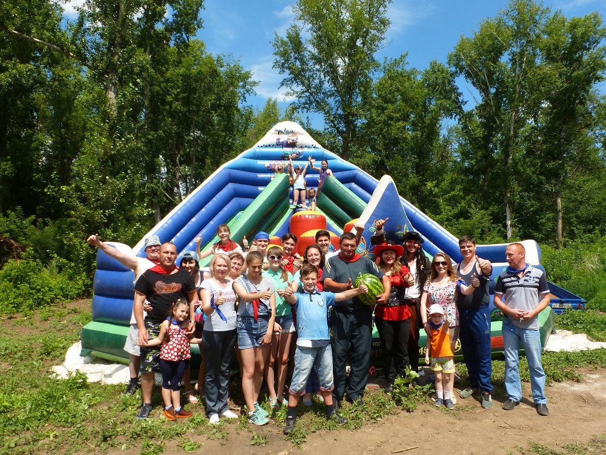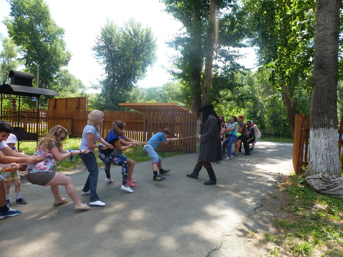 На базе отдыха «Уральская деревня», пират Джек Воробей спрятал клад. Перед участниками двух команд, красных и синих, стояла нелегкая задача – пройти сложный и опасный квест, выполнить задания и раздобыть подсказки. Приключение оказалось не из легких, ведь на пути юных пиратов и их родителей ждала лесная чаща, водная пучина, высокие деревья, интеллектуальные загадки. Клад был найден – им оказался огромный и вкуснейший арбуз, привезенный Джеком с необитаемого острова «Бухта уставших энергетиков».Независимо от итогов пройденных испытаний, каждая семья получила ценный приз, а еще заряд бодрости от подвижных игр, положительных эмоций, хорошего настроения , теплого солнца и свежего воздуха. Купание в Урале и катание на катере завершили большое воскресное приключение.