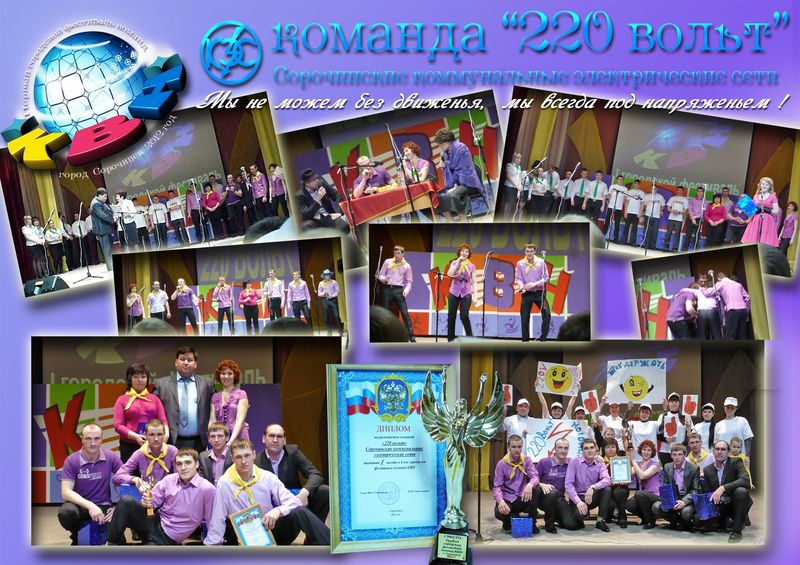В минувшие выходные в «Центре культуры и досуга «Дружба», состоялся первый городской фестиваль команд КВН города Сорочинска. В игре приняли участие представители производственных коллективов. Это Сорочинские коммунальные электрические сети – филиал ГУП «ОКЭС», Сбербанк, НГДУ «Сорочинскнефть».Команда энергетиков «220 вольт», заняла первое место. Победа не стала для Сорочинских энергетиков неожиданностью. Зал «взрывался» овациями, зрители неоднократно, бурно аплодировали во время выступления, команде не раз приходилось выходить на сцену на «бис». Задор, искрометность, азарт и веселое настроение - это то, что помогло легко обогнать соперников и победить! Огромную роль сыграла и группа поддержки. Они приготовили лозунги, плакаты, речёвки, тем самым поддерживали и подзадоривали участников и всех присутствующих в зале. Глава администрации Муниципального образования города Сорочинска Т. Мелентьева вручила благодарственное письмо директору Сорочинских коммунальных электрических сетей Н. Абубекерову, а команде - заслуженные подарки, диплом и кубок!