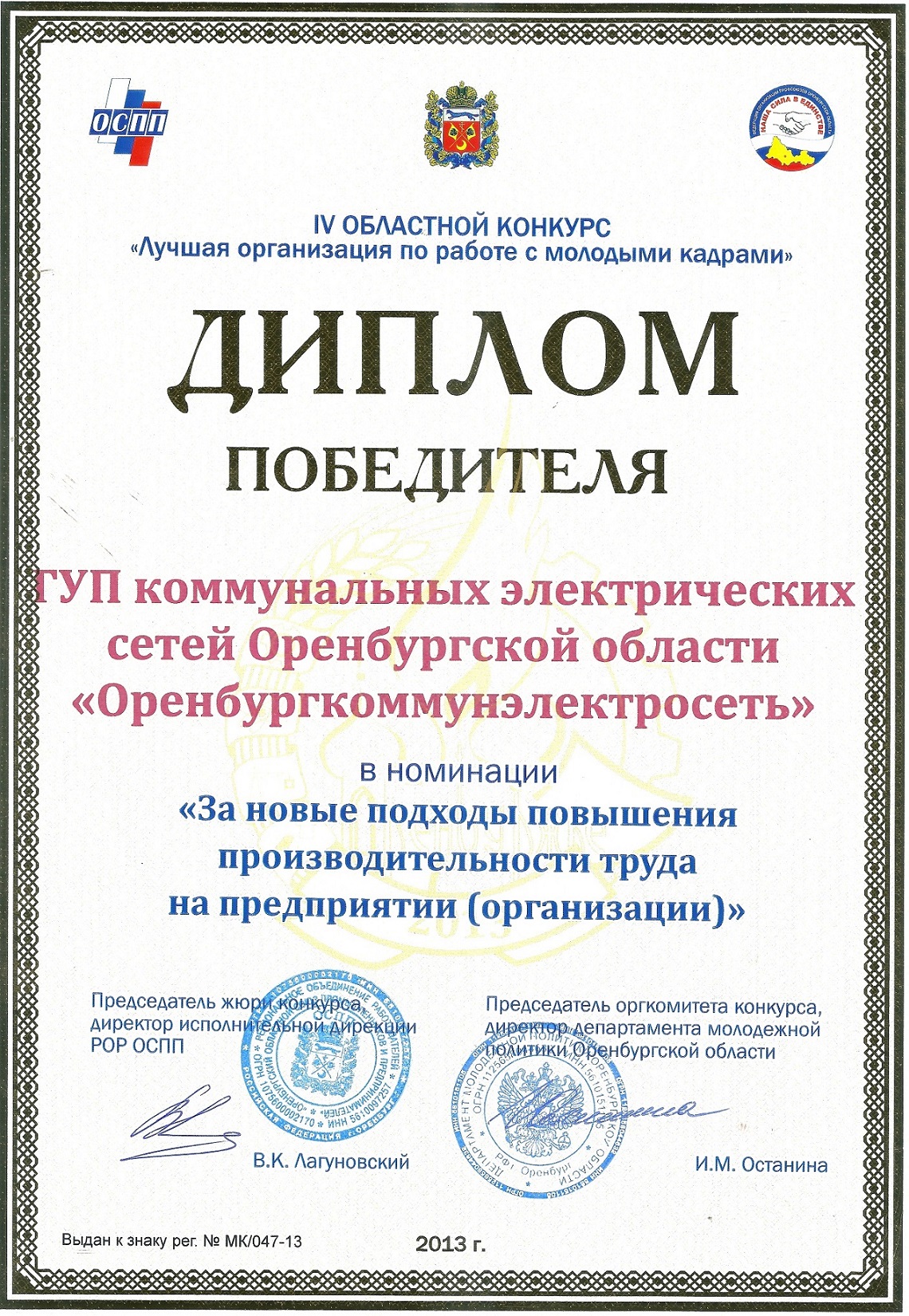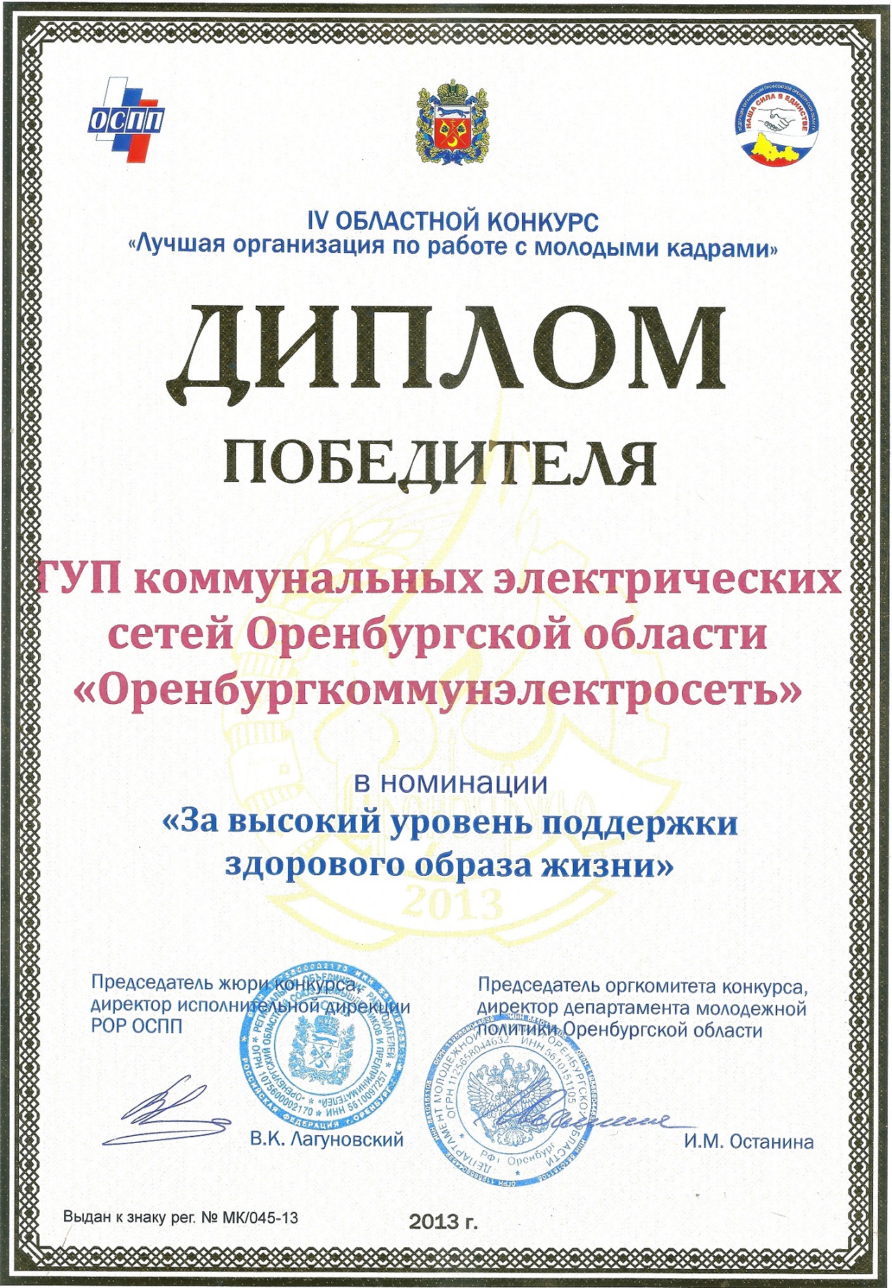 Дипломы победителей в номинациях «За новые подходи повышения производительности труда на предприятии (организации)» и «За высоки уровень поддержки здорового образа жизни» жюри вручило ГУП «Оренбургкоммунэлектросеть».